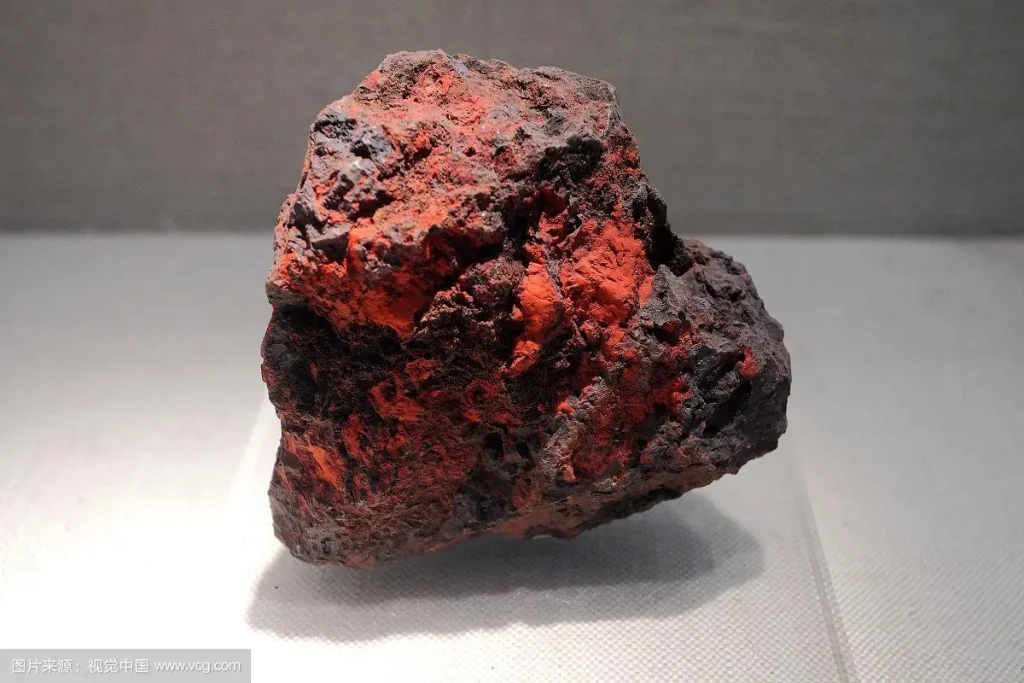 Hematite: An iron ore, mainly iron oxide (Fe₂O₃)